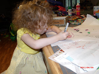 The nerdlet loves drawing, especially when she gets access to permanent markers. She's been at it all morning, about 2 1/2 hours so far. She also has an incredible attention span.