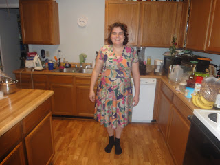 My mom was visiting today and this dress became instantly hers. It's a little roomy in the bodice, but when I tried to take that room out, the back became tight on her so it remains just a little roomy in the bodice.